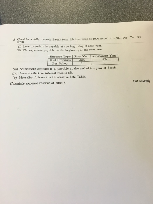 For a fully discrete 3-year term insurance of 10,000 on (40), 5. For a whole life insurance on (80): (i) Level premiums of 900 are payable at the start of each year. (ii) Commission expenses are 50% of premium in the first year and 10% of ... Access Content